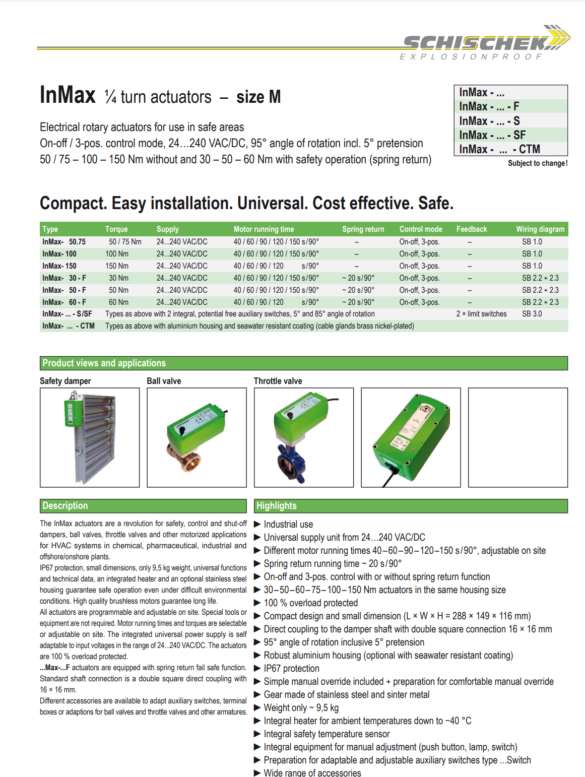 施希克 InMax 四分之一转执行器,用于安全区域。紧凑且坚固,有防护材料、海上/海洋涂层和故障安全选项。用于空气调节阀、防火防烟阀、风量控制、球阀、节流阀和其他四分之一转装置的自动化。