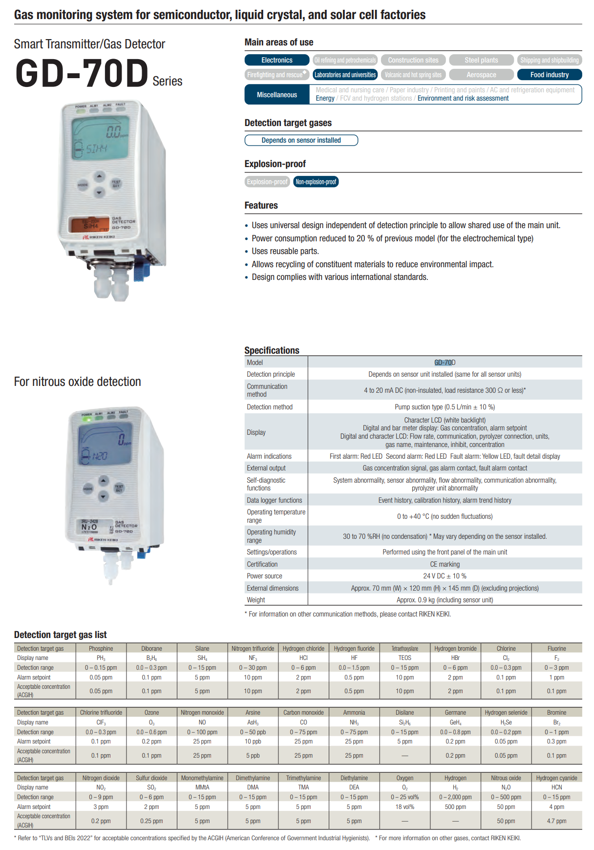 1-C6H12, ALD, AsH3, B2H6, Br2, BTBAS, C10H22, C2F4, C2H2, C2H2CL2, C2H4, C2H4O2, C2H5OH, C2H6, C2HCL3, C3F6, C3H6, C3H6O, C3H8, C4F6, C4H6, C5F8, C5H5N, C5H8O, C6H12, C6H12O3, C7H8, C8H16, C8H18, CH2CL2, CH2O2, CH3CN, CH3OH, CH3SiH3, CH4, CL2, CLF3, CO, COF2, COS, CTFE, D2, DEA, DEMS, DMA, DMAC, DMDMOS, DMF, EDC, EMA, EO, EtAc, F2, GeH4, H2, H2O2, H2S, H2Se, HBr, HCL, HCN, HF, HFE7200, Hhfac, HI, HMDS, HMDSO, HNO3, i-C4H10, i-C4H8, I2, IPA, LAE, LPG, MMtA, n-C6H14, N2H4, N2O, NF3, NH3, NMP, NO, NO2, O2, O3, OK-73, OMCTS, PF3, PGMMEAc, PH3, QMS, R-123, R-134a, R-152A, R-245fa, R-32, R-407E, R-41, R-410A, Si2H6, Si3H9N, SiH4, SiO2, SO2, TEB, TEOP, TEOS, TMA, TMB, TMOP, TMP, TMS, TRIMOS, TRIMS, VCM, VDF