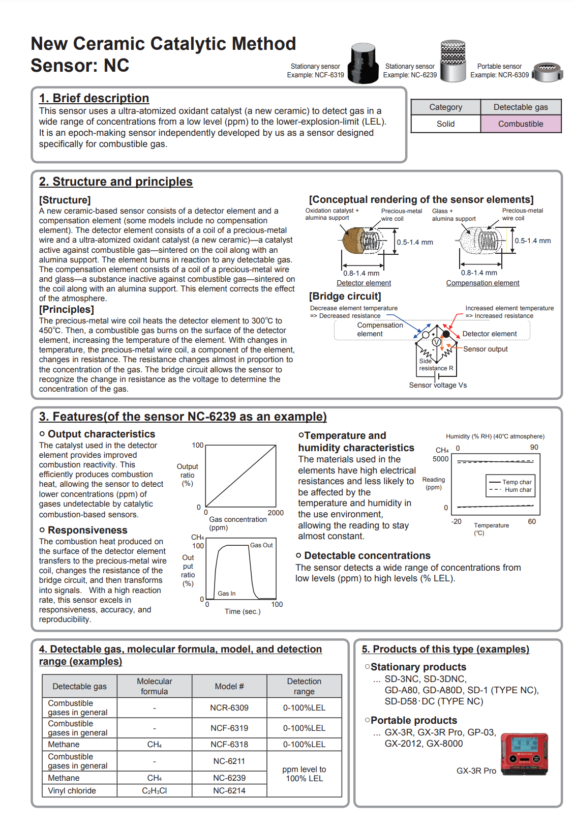 该传感器依赖于检测超细颗粒氧化催化剂(新型陶瓷)上燃烧的可燃性气体产生的热量。传感器测量范围广泛,从数千 ppm 到爆炸下限(LEL)。