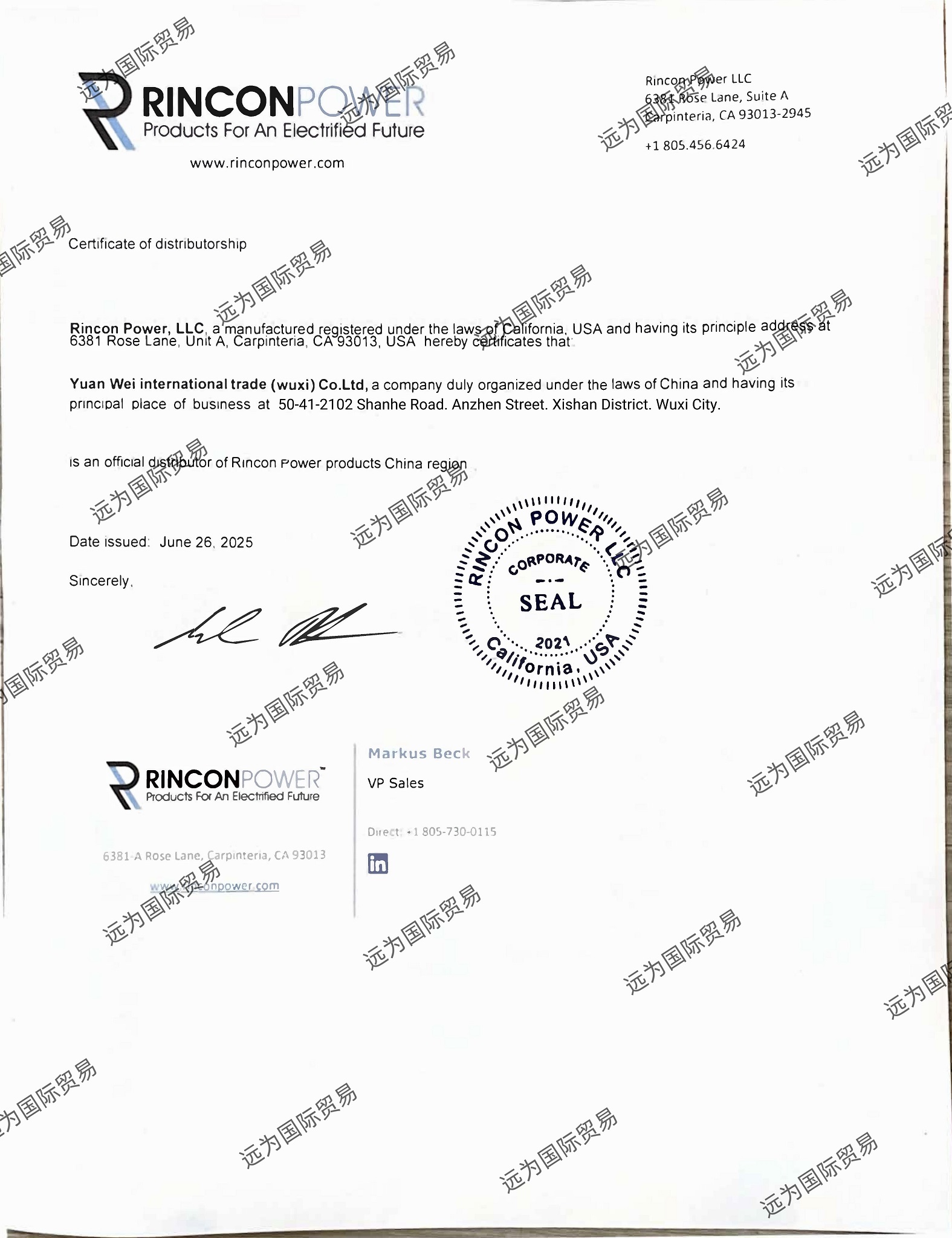 恭喜1230SHOP获得美国Rincon POWER中国区独家代理商资质!