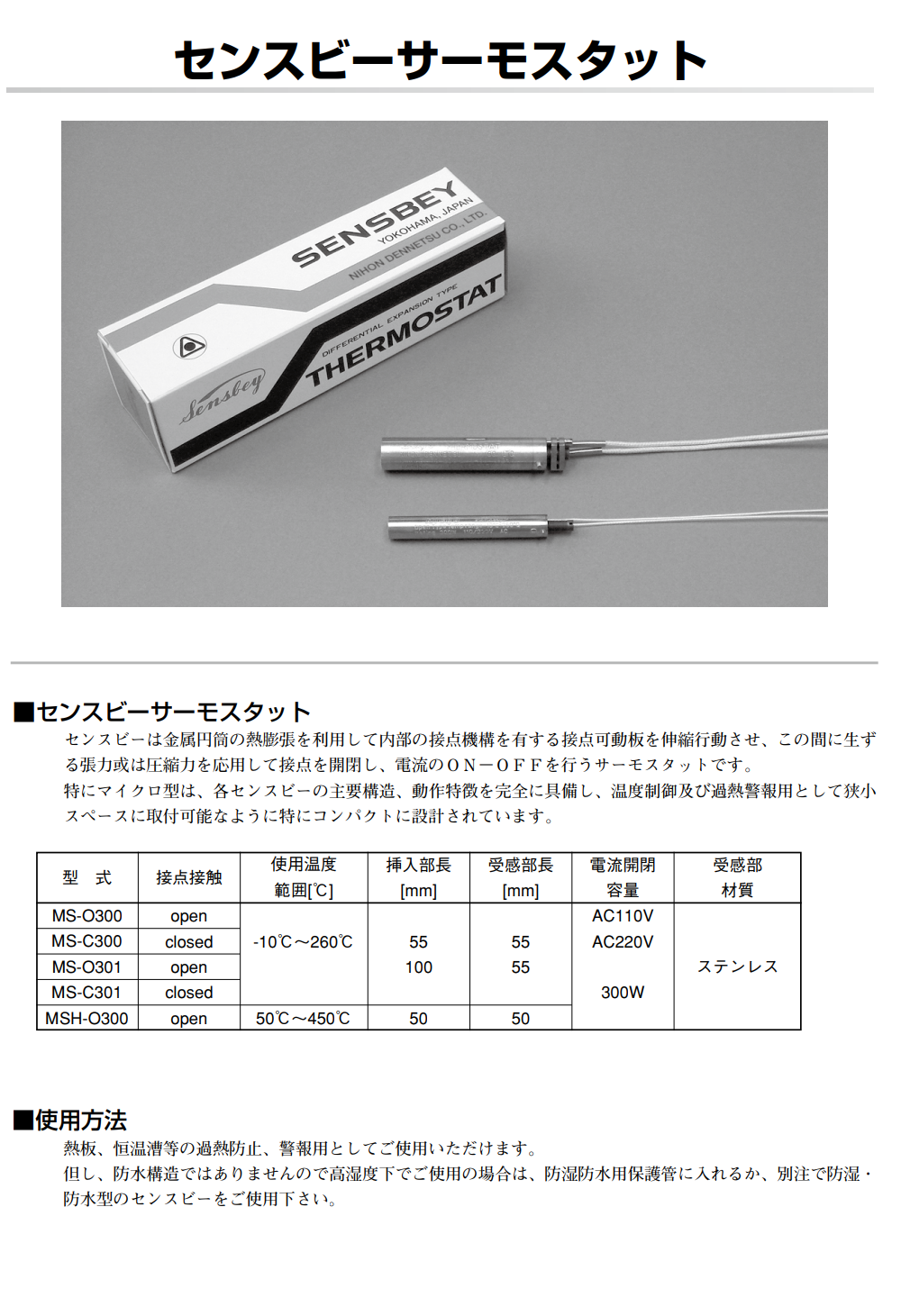日本SENSBEY温度传感器,センスビー MS-O300特殊 260℃